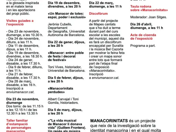 Programa d'activitats de l'exposició "Manacorinitats"