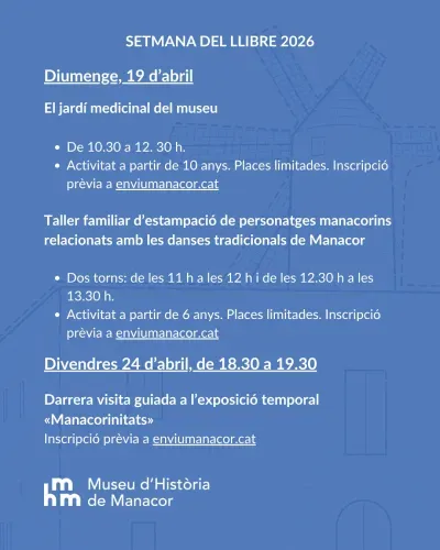 Vine a conèixer les plantes medicinals del museu, a recol·lectar-ne i a aprendre alguns dels usos que han tengut al llarg de la història. Farem un quadernet recollint diferents maneres d’emprar-les i algunes receptes. Per després poder posar en pràctica.